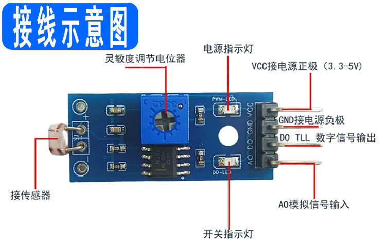 - 規格:光敏電阻亮度傳感器(4針)