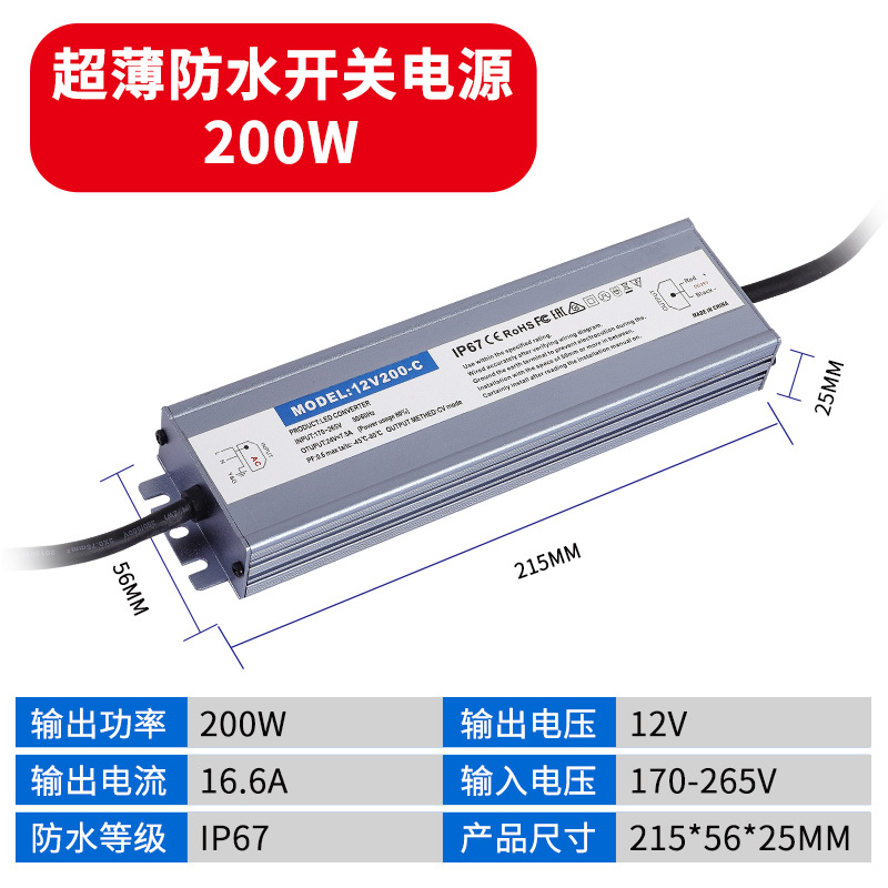 - Output Power: Waterproof Power Supply 12V 200W