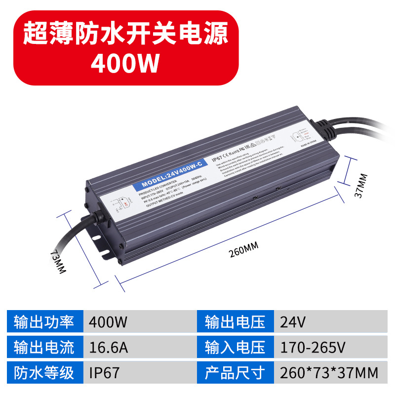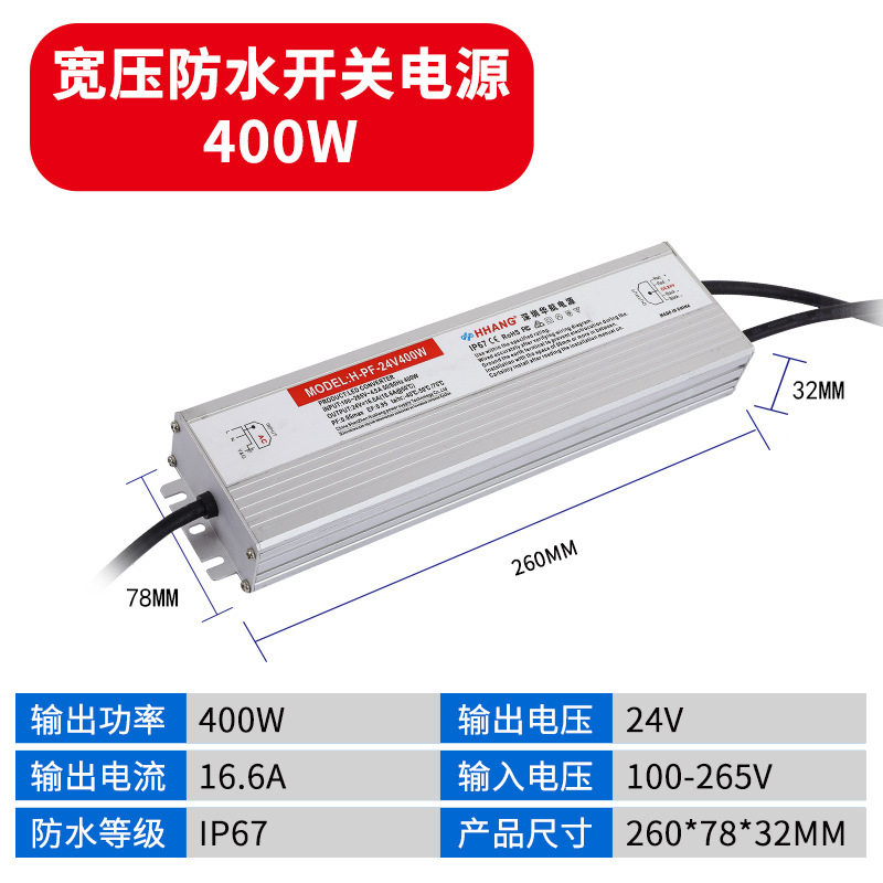 - Output Power: Waterproof Power Supply 24V 400W