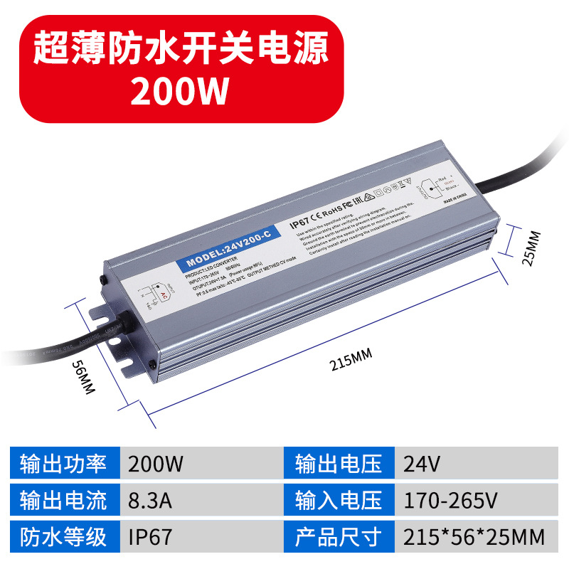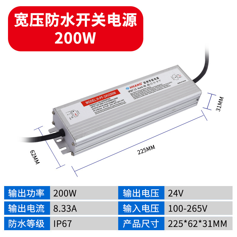 - Output Power: 110V Input Waterproof Power Supply 24V 200W