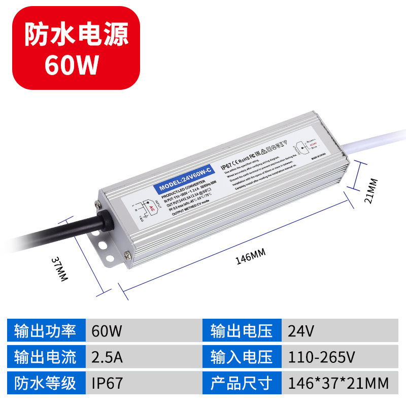 - Output Power: 110V Input Waterproof Power Supply 24V 60W