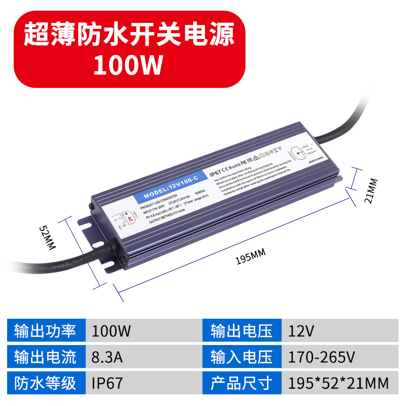 - Output Power: Waterproof Power Supply 12V 100W