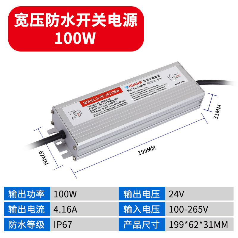 - Output Power: Waterproof Power Supply 24V 100W
