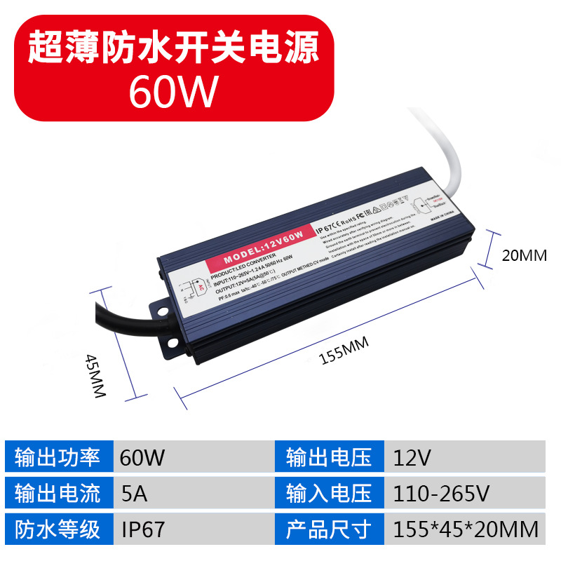 - Output Power: 110V Input Waterproof Power Supply 12V 60W