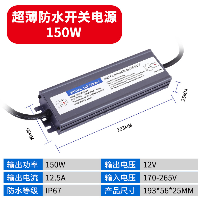 - Output Power: Waterproof Power Supply 12V 150W