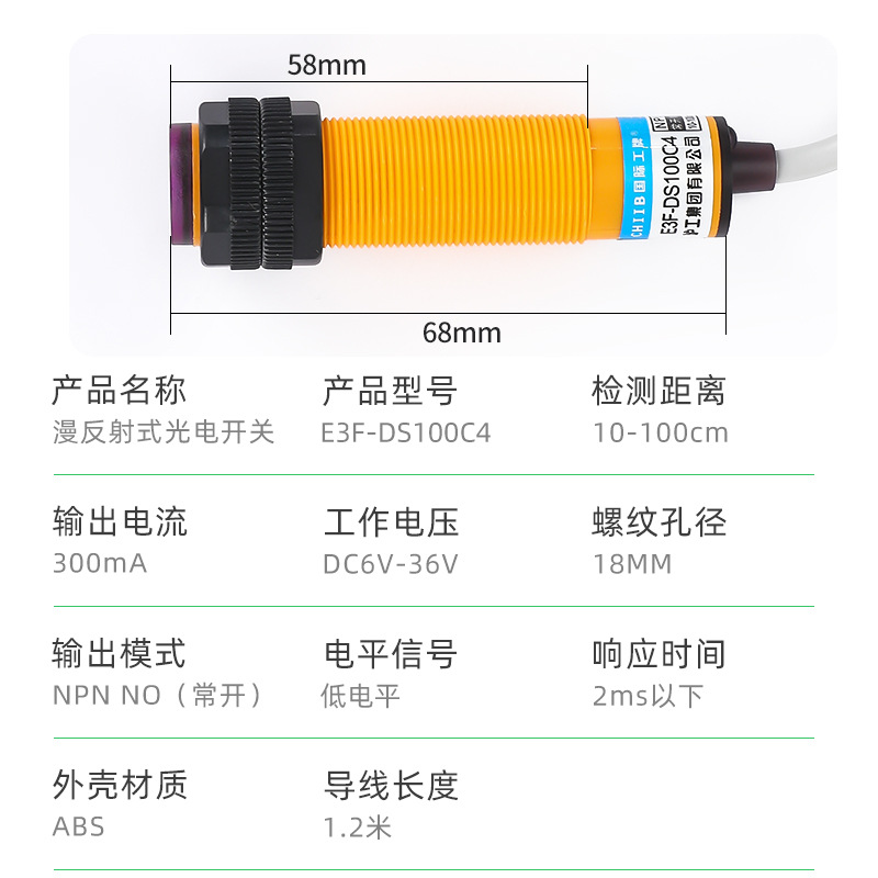 - 規格:E3F-DS100C4直流NPN常開