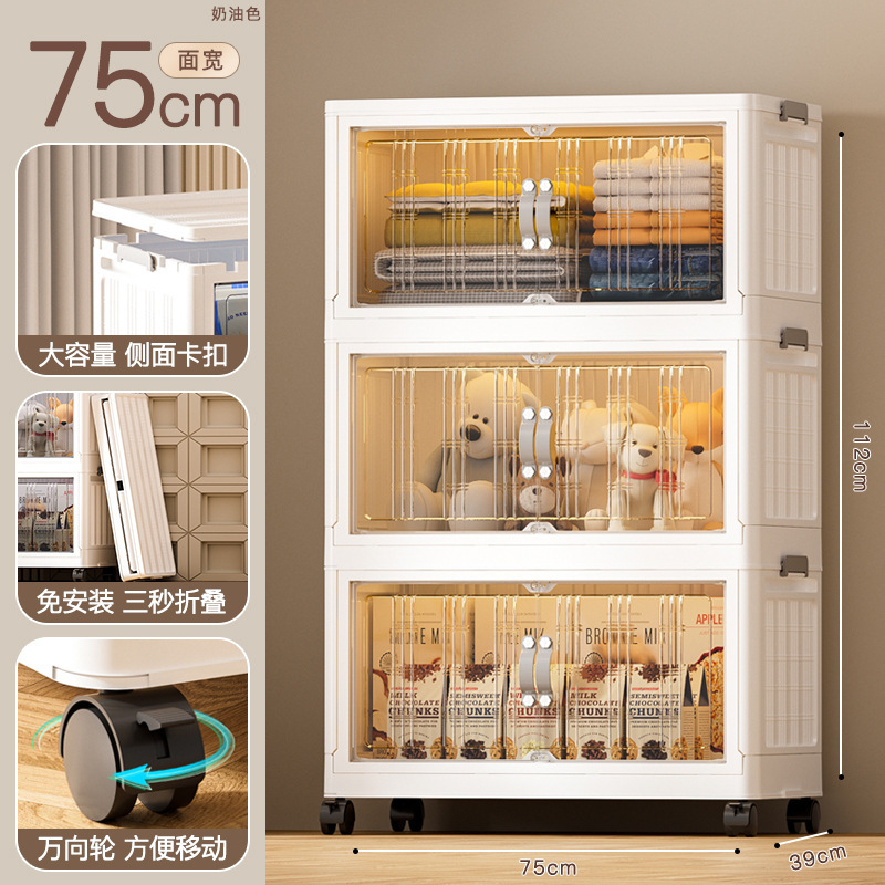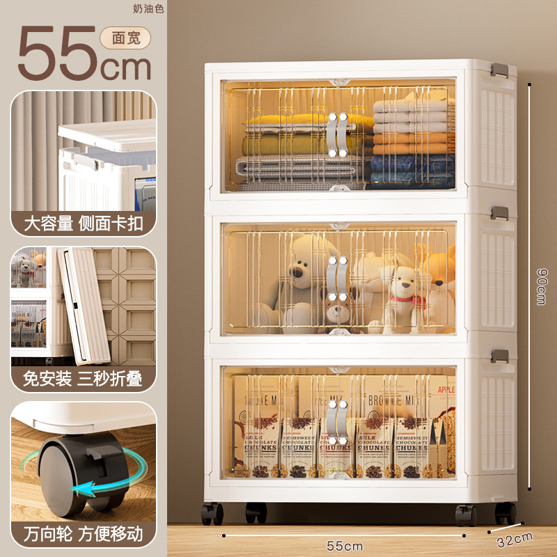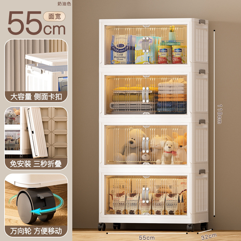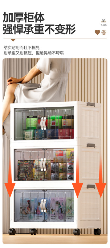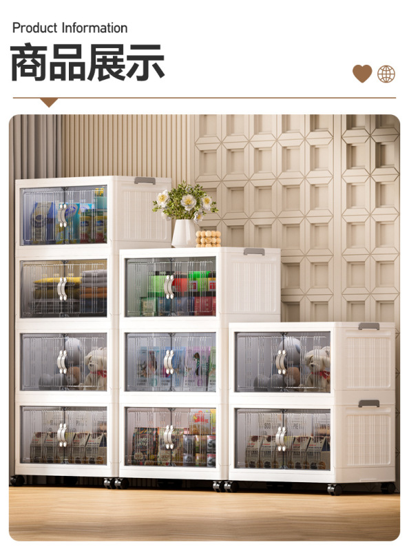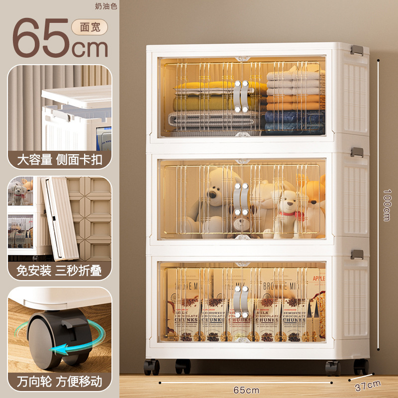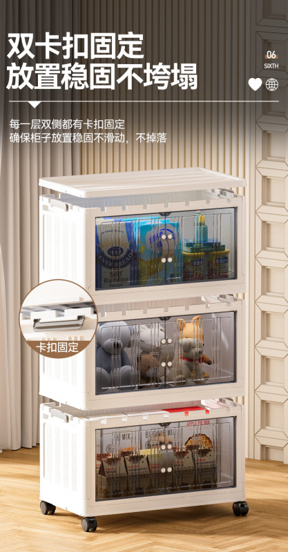 - 抽屜式收納櫃塑料:抽屜式免安裝落地櫃家用大容量雙開門磁吸門摺疊可疊加防塵萬向輪帶滑輪玩具廚房