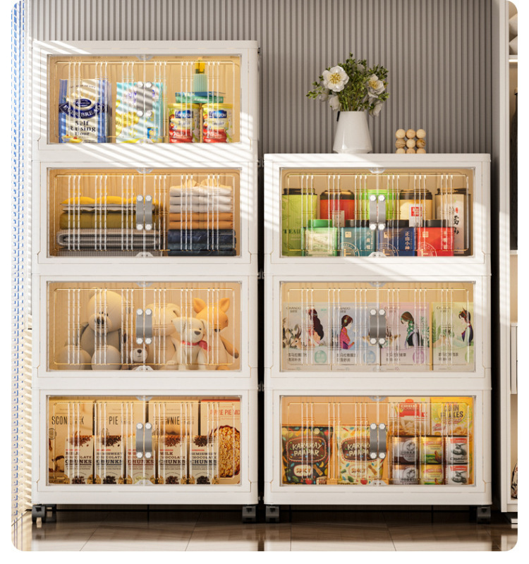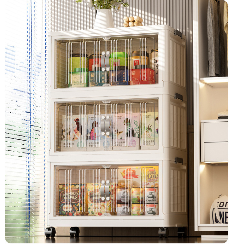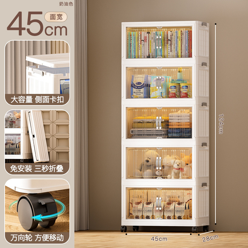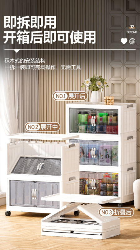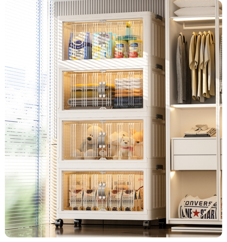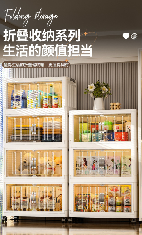 - 抽屜式收納櫃塑料:抽屜式免安裝落地櫃家用大容量雙開門磁吸門摺疊可疊加防塵萬向輪帶滑輪玩具廚房