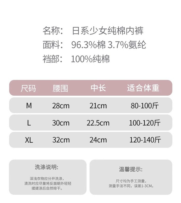 - Crotch lining composition: cotton