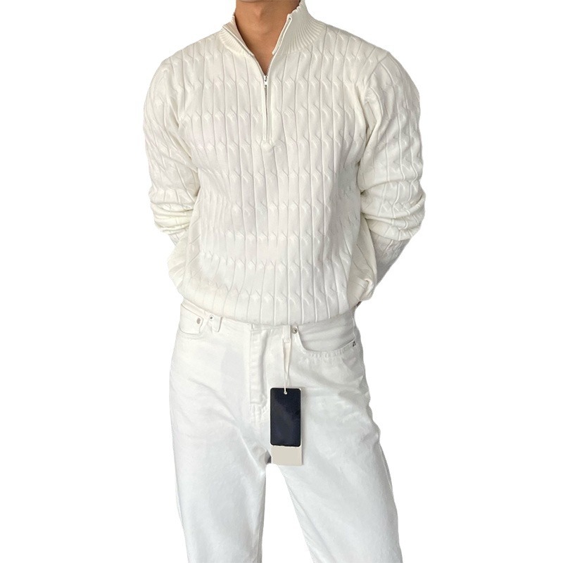 - Neckline: Semi-high collar