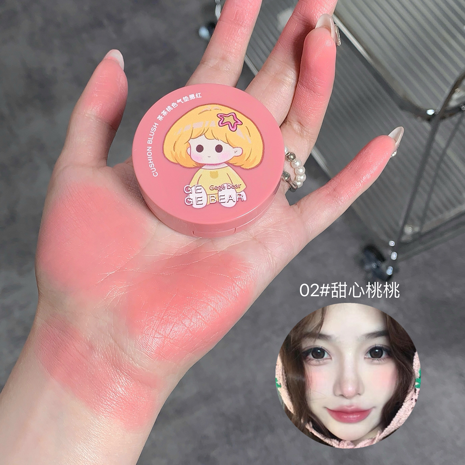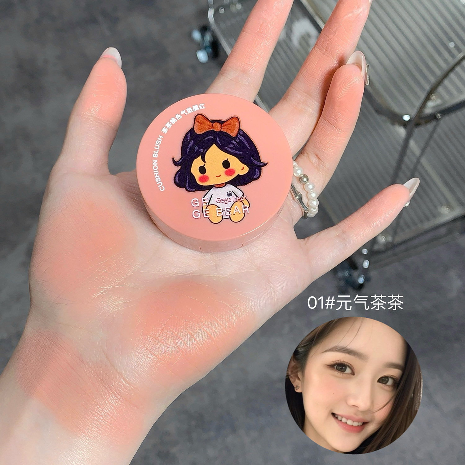 - 產品名稱:戈戈小熊茶茶桃色氣墊腮紅