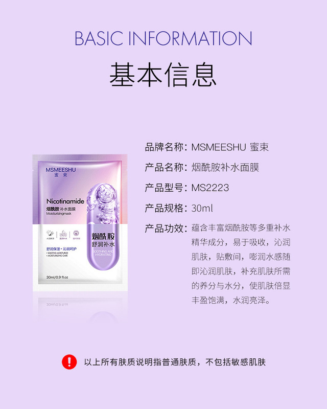 - 產品名稱:MSMEESHU蜜束煙酰胺補水面膜