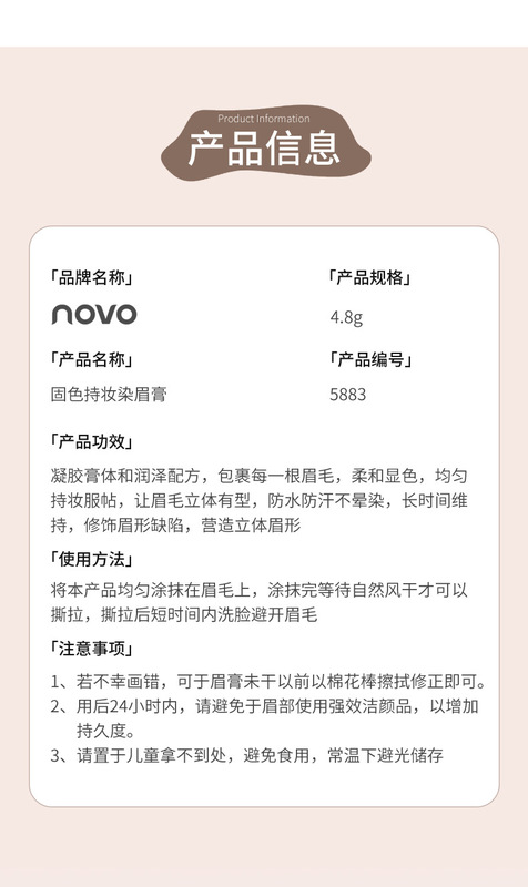 - Product Name: novo Color-Lasting Eyebrow Color 04# Light Brown
