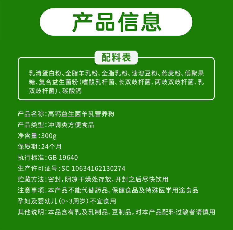 - Product Name: High-Calcium Probiotic Lamb Milk Nutritional Powder