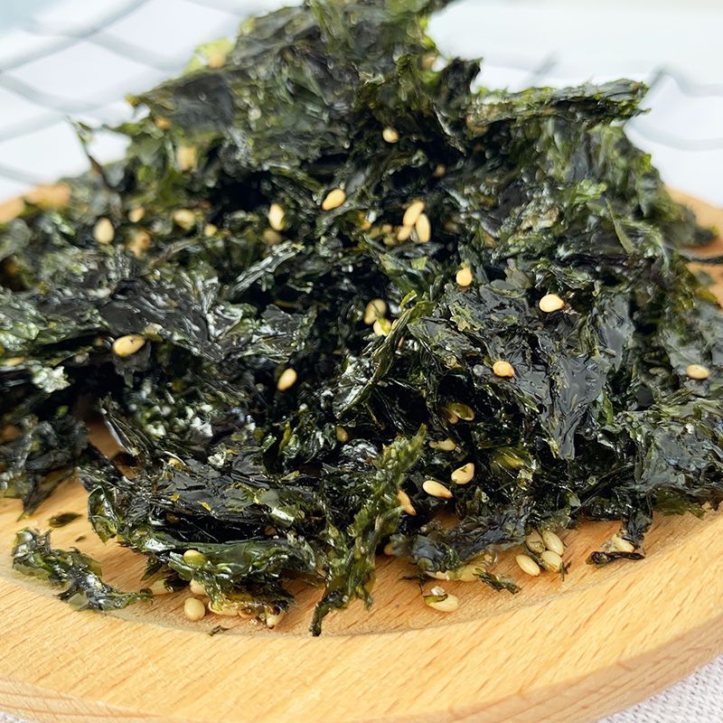 - Ingredients: Dried laver, corn oil, white sugar, sesame, edible salt, sesame oil