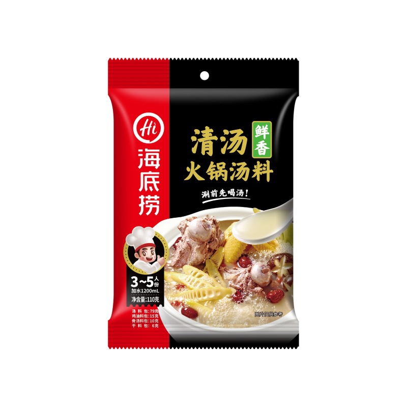 - Packaging Specification: Haidilao Fresh Clear Soup 110g/bag