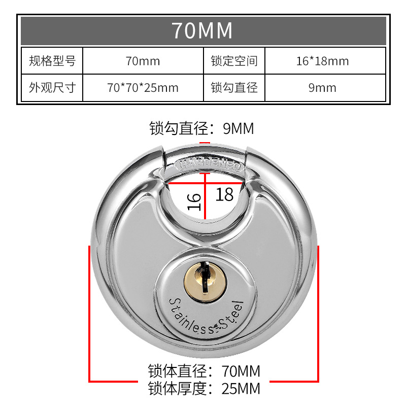 - Specifications: Stainless steel round cake lock 70mm (this type is made of 201 material)