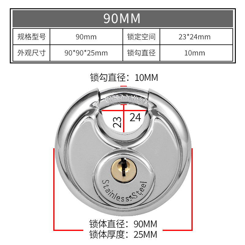 - Specifications: Stainless steel round cake lock 90mm (this model is made of 201 material)