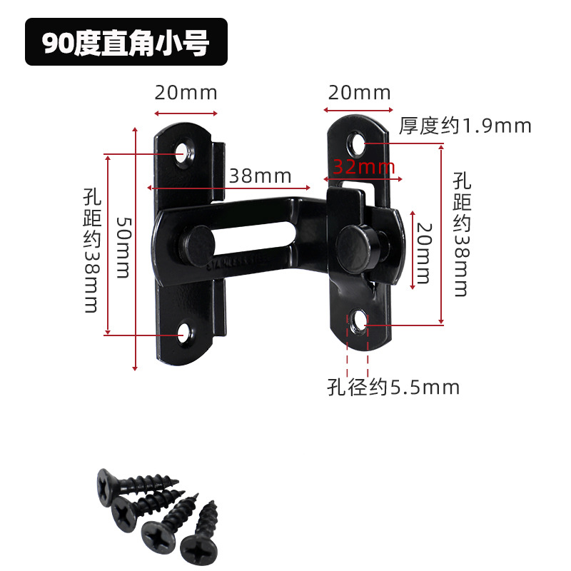 - Specification: Black 90-degree Small Door Buckle + Self-drilling Adhesive