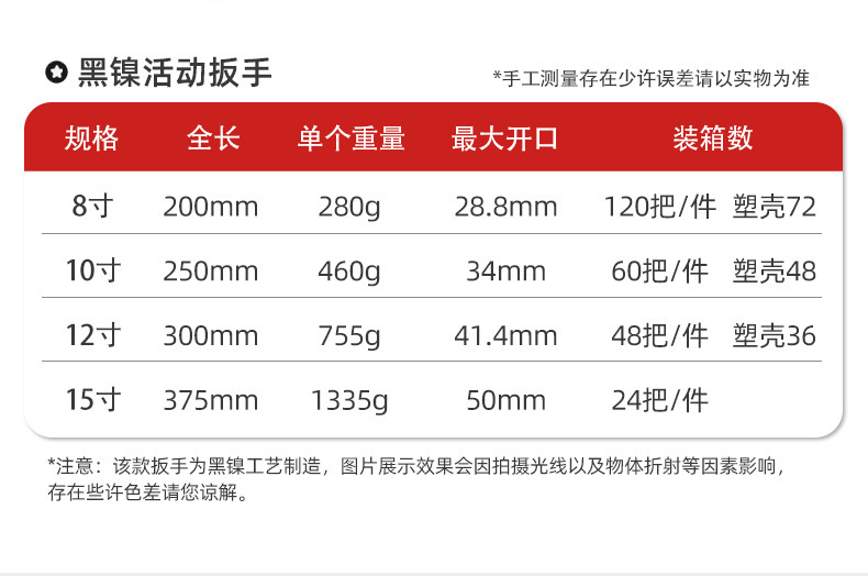 - 規格型號:黑鎳10寸扳手(帶塑殼)