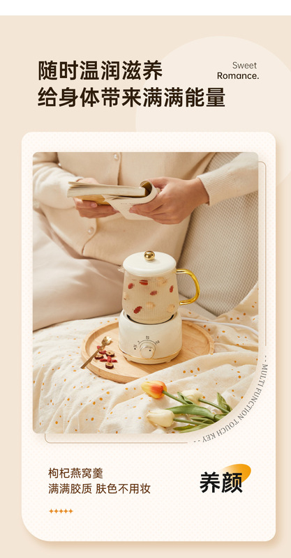 - Additional Functions: Pre-set Timed Keeping Warm, Boiling Water, Stewing Dishes, Sweet Desserts, Flower Tea