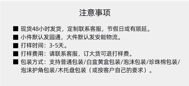 Delivery time: For products in stock, they will be shipped within 3 working days (excluding holidays) after you place your order and make payment. You will receive our notification after shipment.