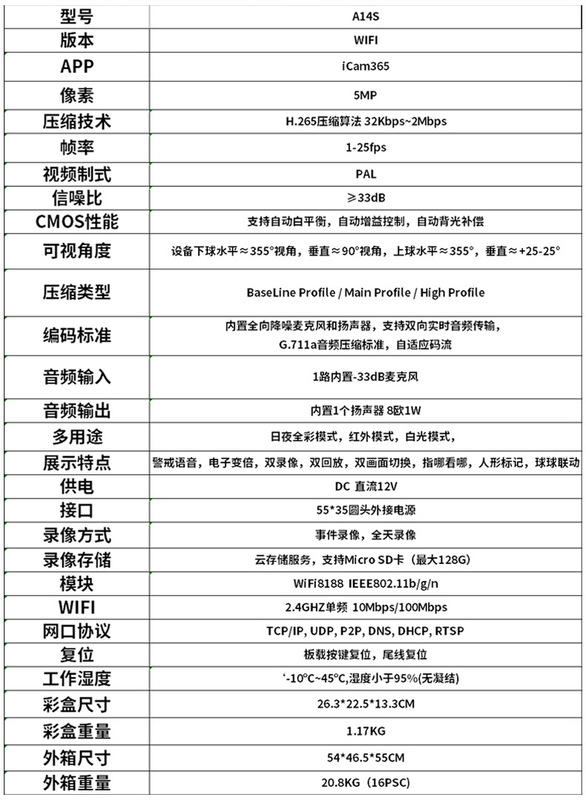 - Specification: Dual Pan-Tilt Spherical联动 (English US Standard)