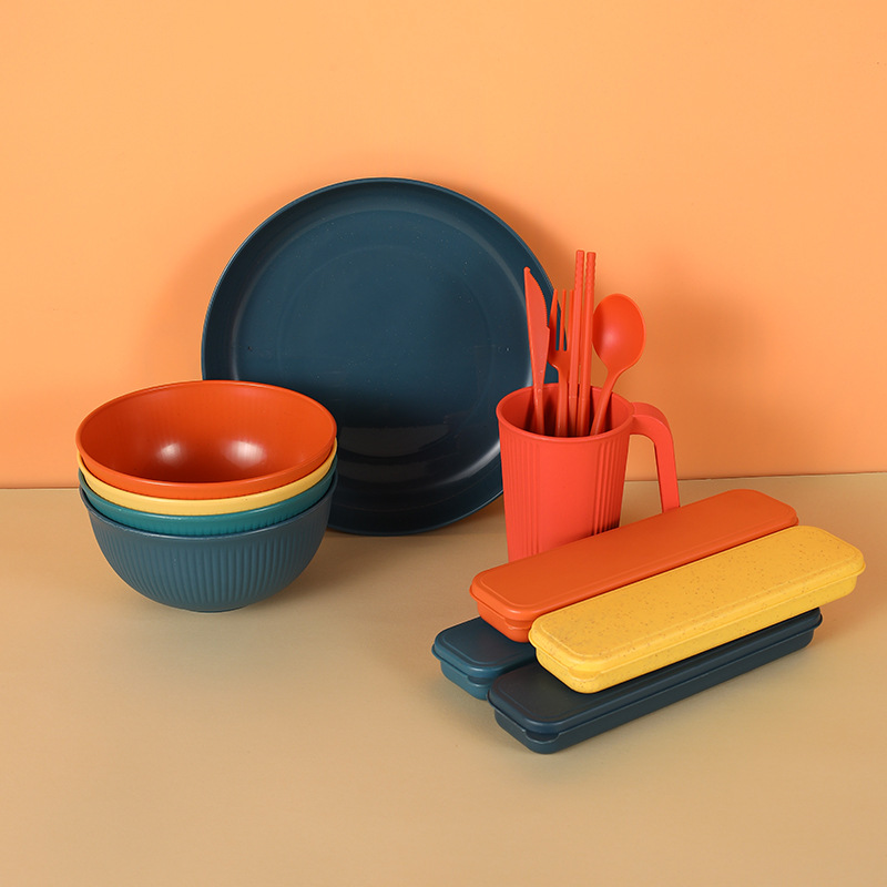 - Specification: Mixed Color 32-Piece Set (Vertical Pattern) Handle Cups with Square Plates and Knife, Fork, Spoon
