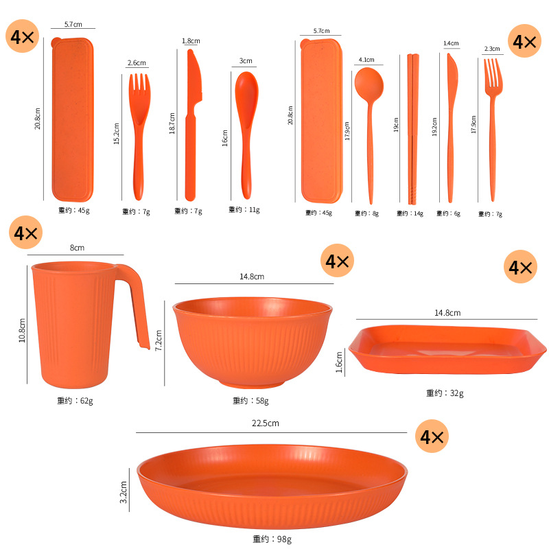 - Specification: Orange 32-Piece Set (Vertical Pattern) Handle Cups with Square Plates and Knife, Fork, Spoon