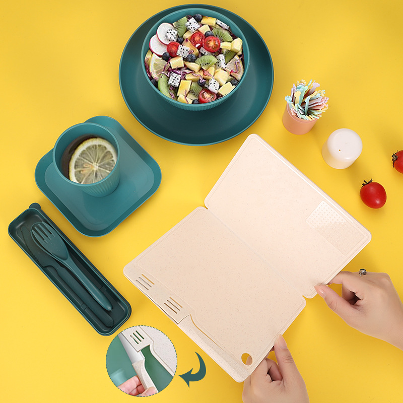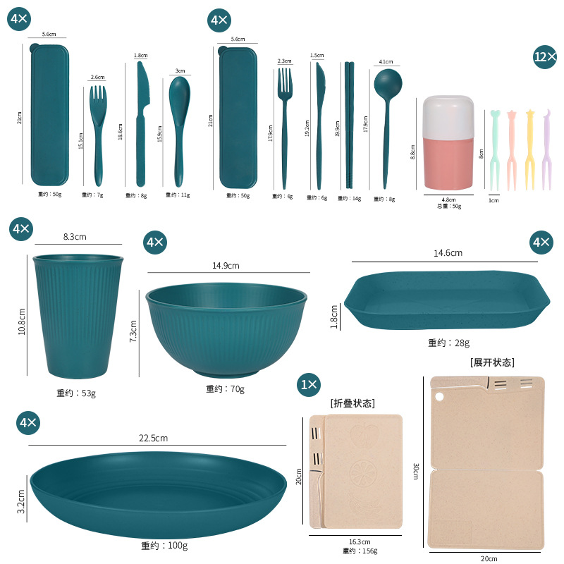 - 規格:綠色豎紋6人份(刀叉勺)帶方碟摺疊砧板水果叉