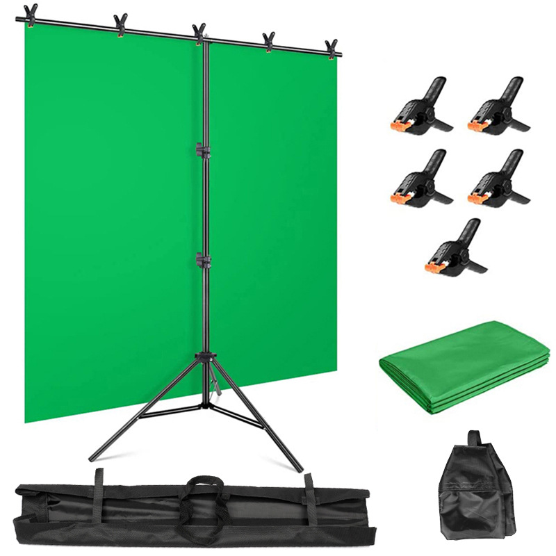 - Package Contents: 2-meter Light Stand*1 + Horizontal Bar*2 + Adapter*1 + Portable Bag*1 + 2*1.5-meter Green Screen*1