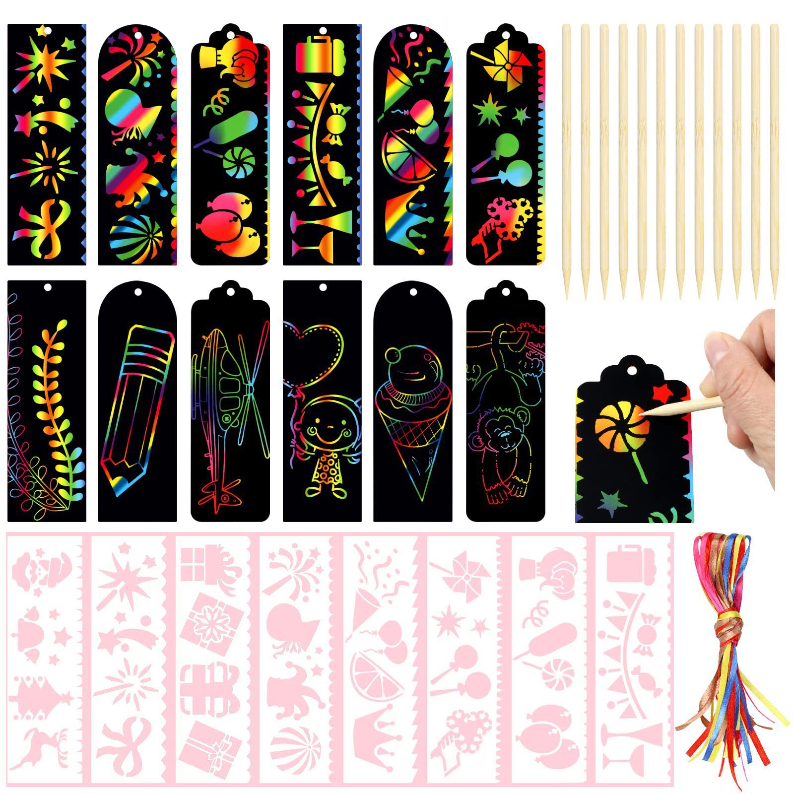 - 規格:24張書籤+24彩帶+12竹筆+8模板
