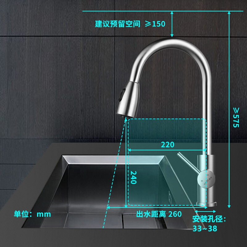 - Specification: Stainless Steel Brushed Pull-out Faucet