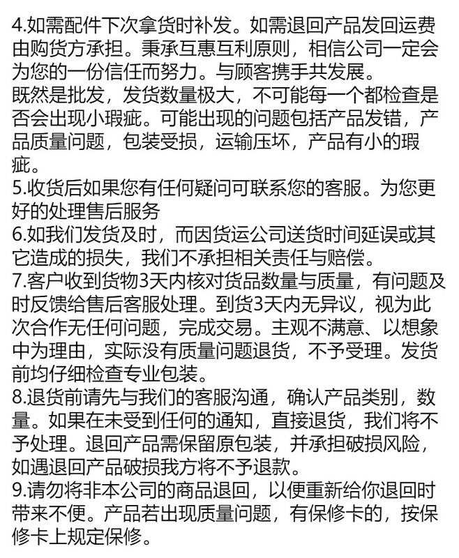 Within 15 days from the date of receipt, customers can be provided with an unconditional return service. The application for return of goods requires the consent of the merchant in the store.
