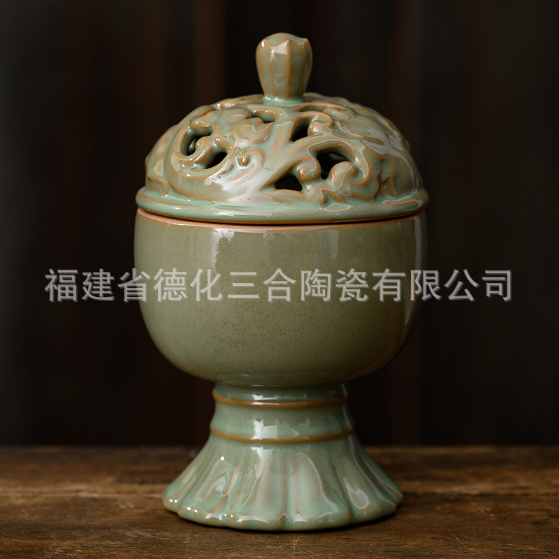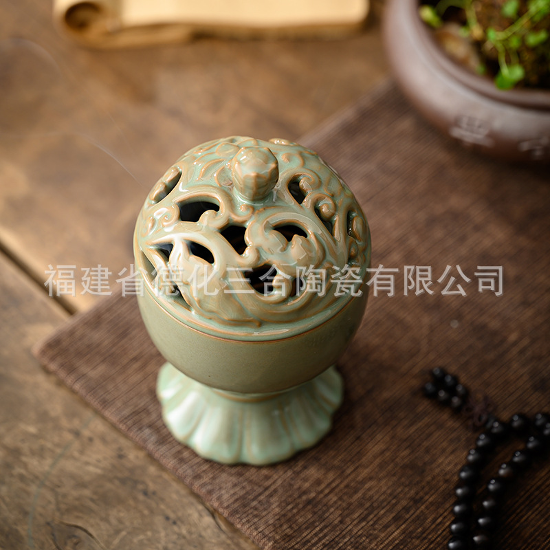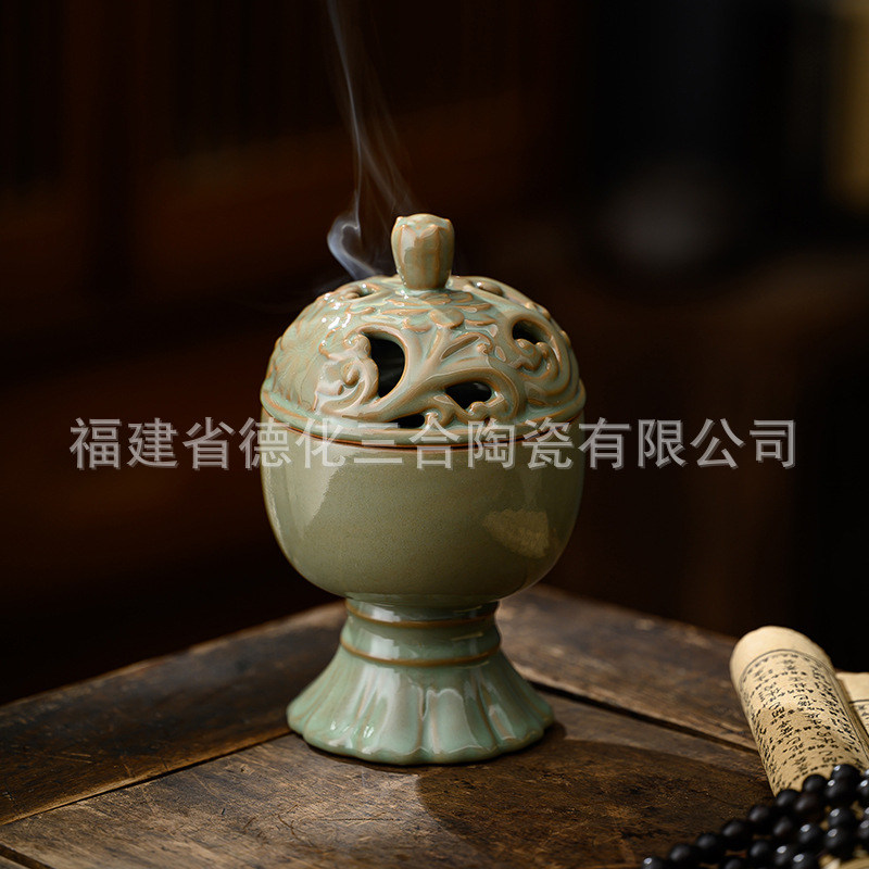 - Specification: Blue Glaze Lotus Charm Incense Burner