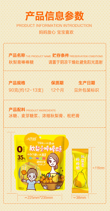 - 包裝規格:秋梨膏棒棒糖90g/袋