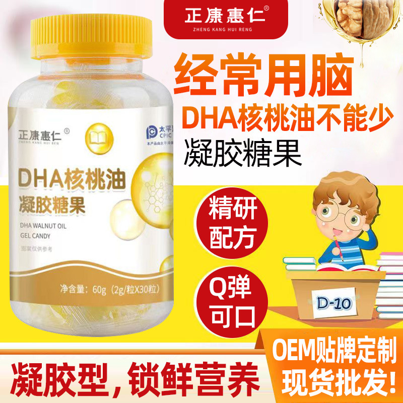 - Packaging Specification: Zhengkang Huiren DHA Walnut Oil Gummy Candies (2g*30 pieces/bottle)