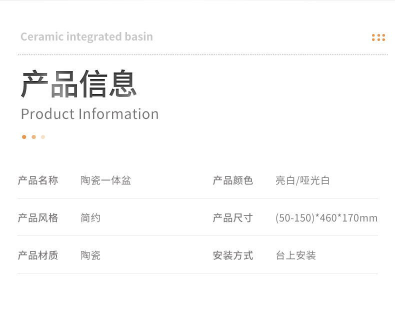 - Sink Top Type: Monoblock Ceramic Basin