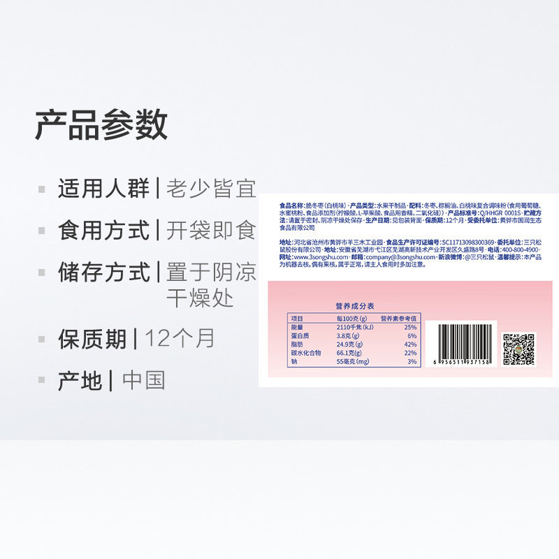 - Specification: Three Squirrels White Peach Jujube 40g*3 Bags