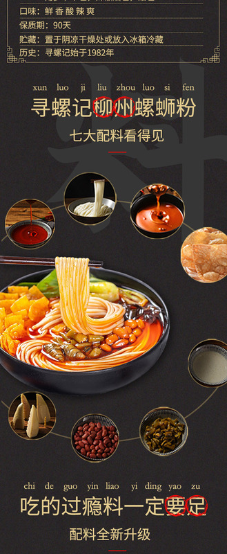 - Ingredients and配料: Rice noodle package, soup base package, chili oil package, fermented bean curd and peanuts package, sour bamboo shoot package, bean and radish dry vegetable package, vinegar package
