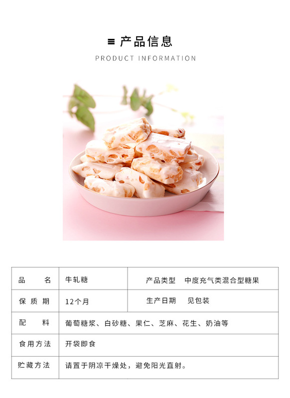 - Ingredients and Components: Egg white, cream, milk powder, nuts