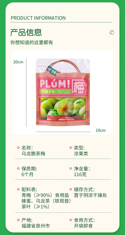 - Packaging Specification: Oolong Crispy Plum Tea 116g