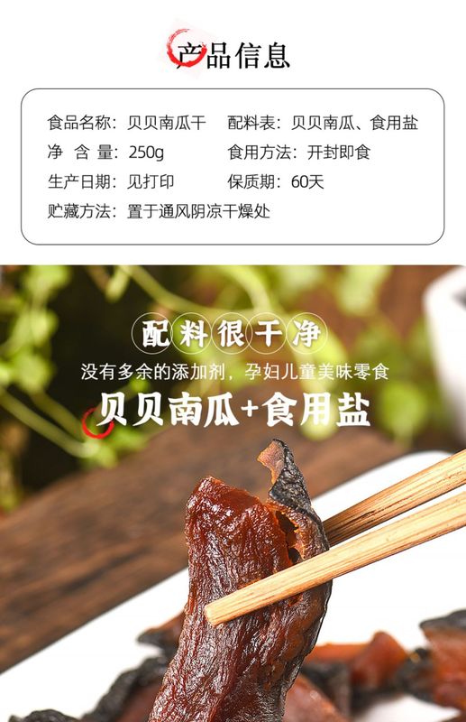 - Packaging specification: [Beibei南瓜干] Net weight: 250g*1 bag (soft and delicious)