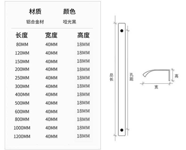- 規格:(弧形)啞黑總長120mm【加厚鋁材】