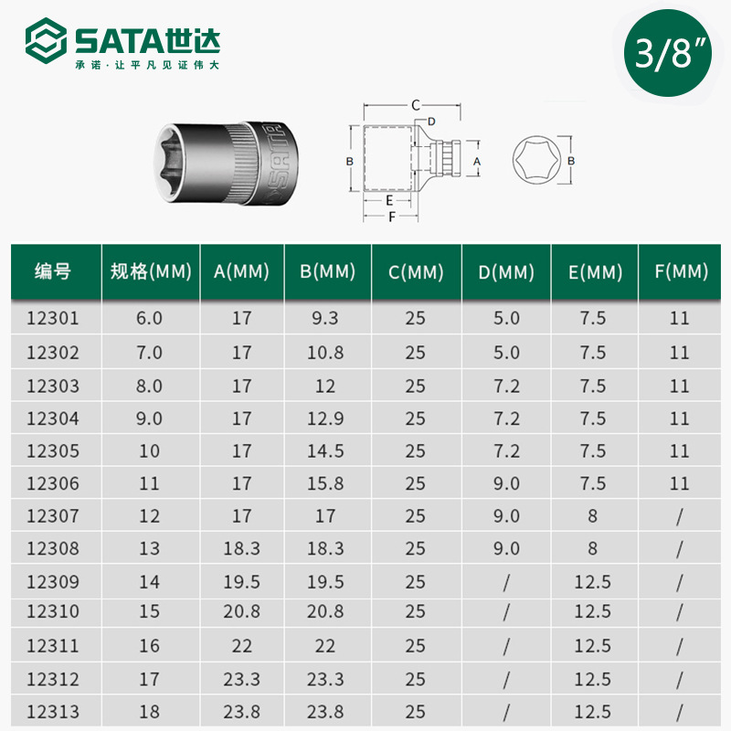 - Specification: 1230710MM Series 6-point Socket 12MM