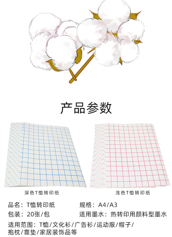 - Specification: (A4) Dark Color Pure Cotton T-Shirt Heat Transfer Paper (Blue Grid) - 20 Sheets