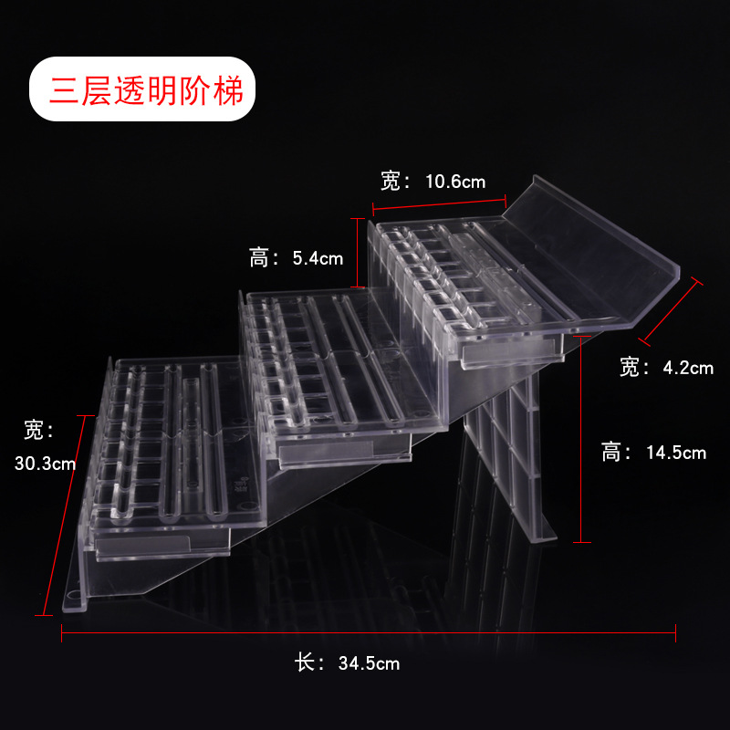 - Specification Model: 3-layer transparent display stand without rear support