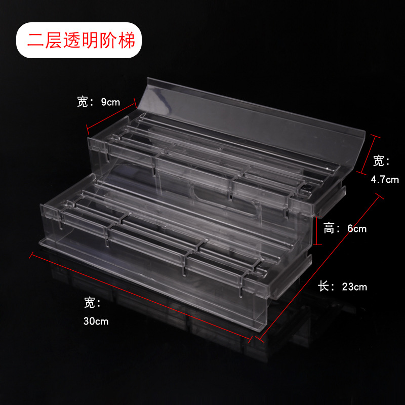 - Specification Model: 2-layer transparent display stand without rear support rack