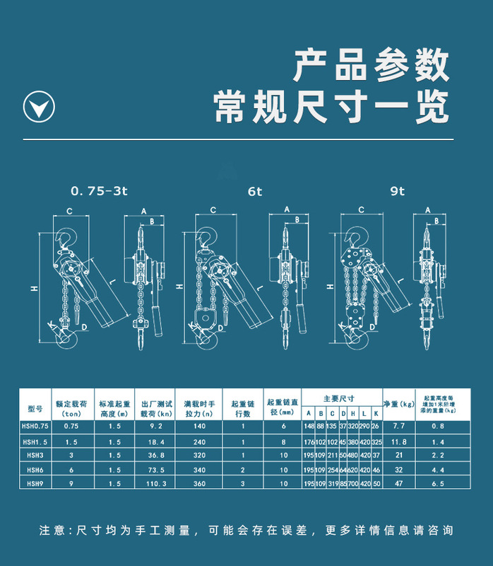 - Model: HSH0.75 tons 1.5 meters