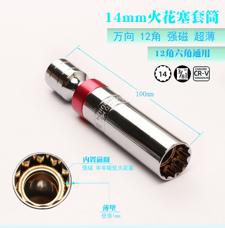 - Specification Model: Universal Magnetic Spark Plug Socket 14*100mm